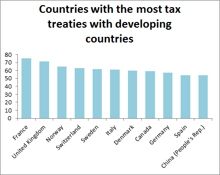 Here’s an interesting chart. Do you notice anyone missing? Interestingly, the United States is considerably less keen on signing tax treaties with developing countries than you might expect, given the amount of investment from it to, well, most places. Its only treaty with the whole of sub-Saharan Africa is with South Africa. When I looked in the wikileaks cables (of which more another day) it’s clear that many more developing countries want tax treaties with the US than get them.